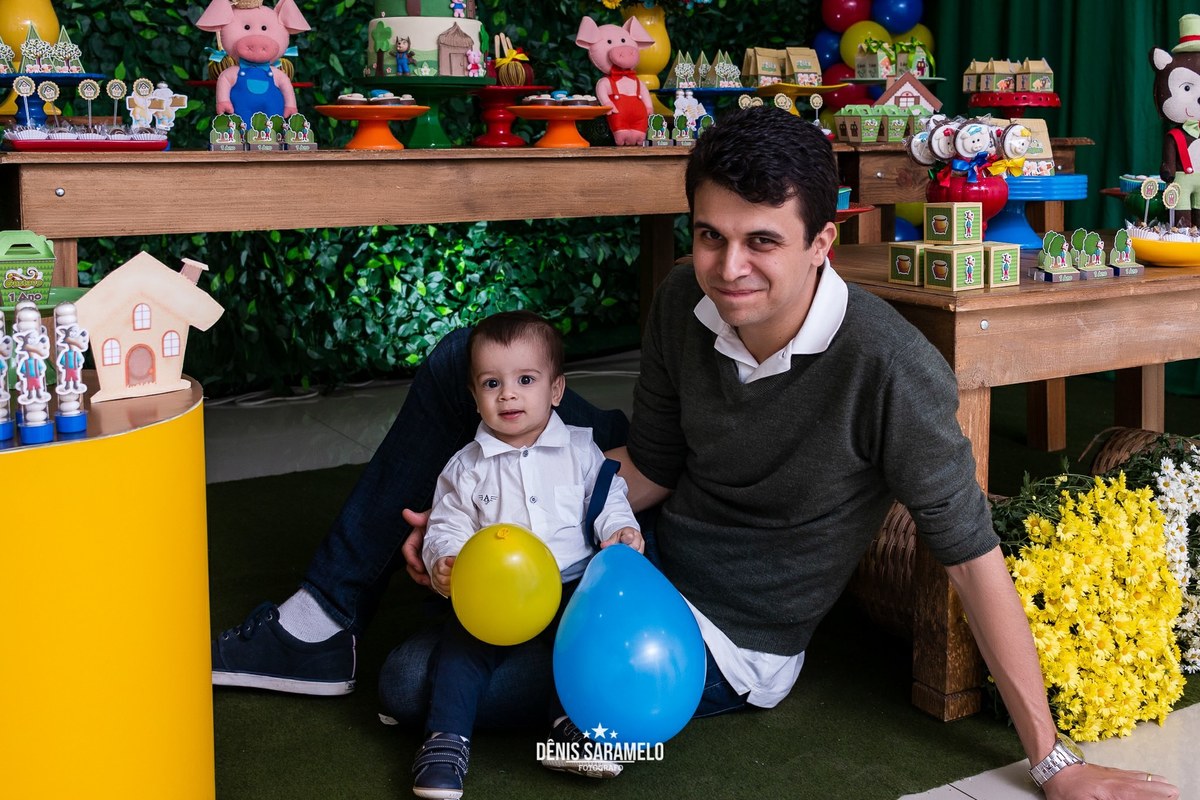 Que prazer fotografar a festa infantil do Gustavo. Ele comemorou 1 ano de vida junto com os 3 porquinhos, um tema de decoração que eu ainda não havia fotografado.